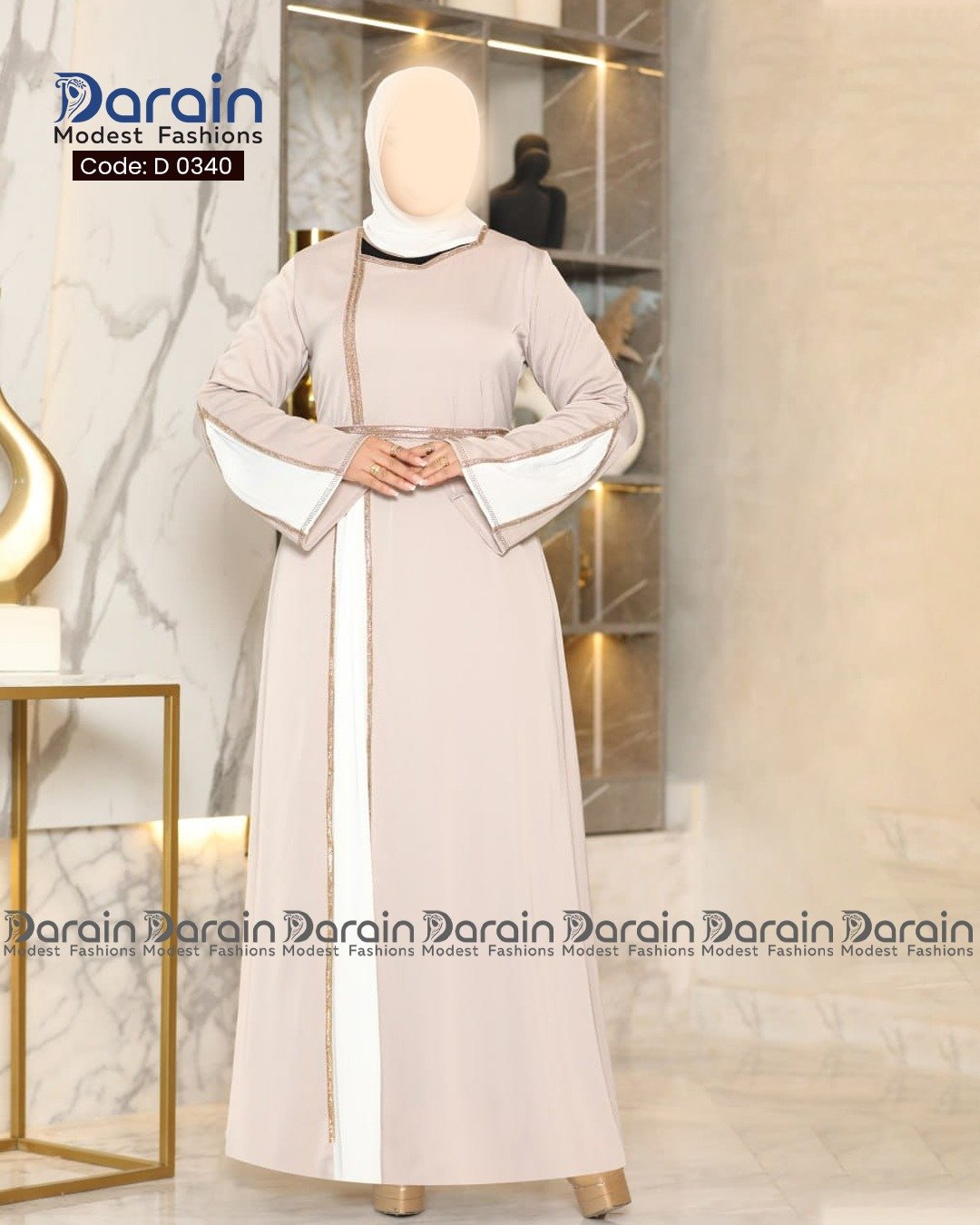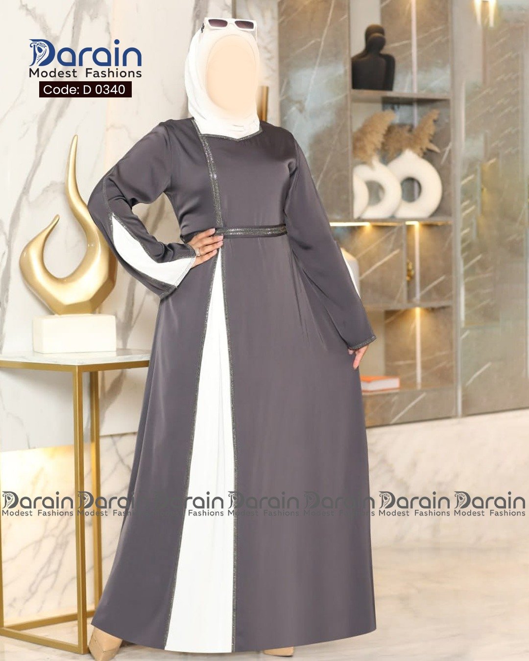 This elegant piece from Darain Modest Fashion is thoughtfully designed for women who value modesty and timeless style.